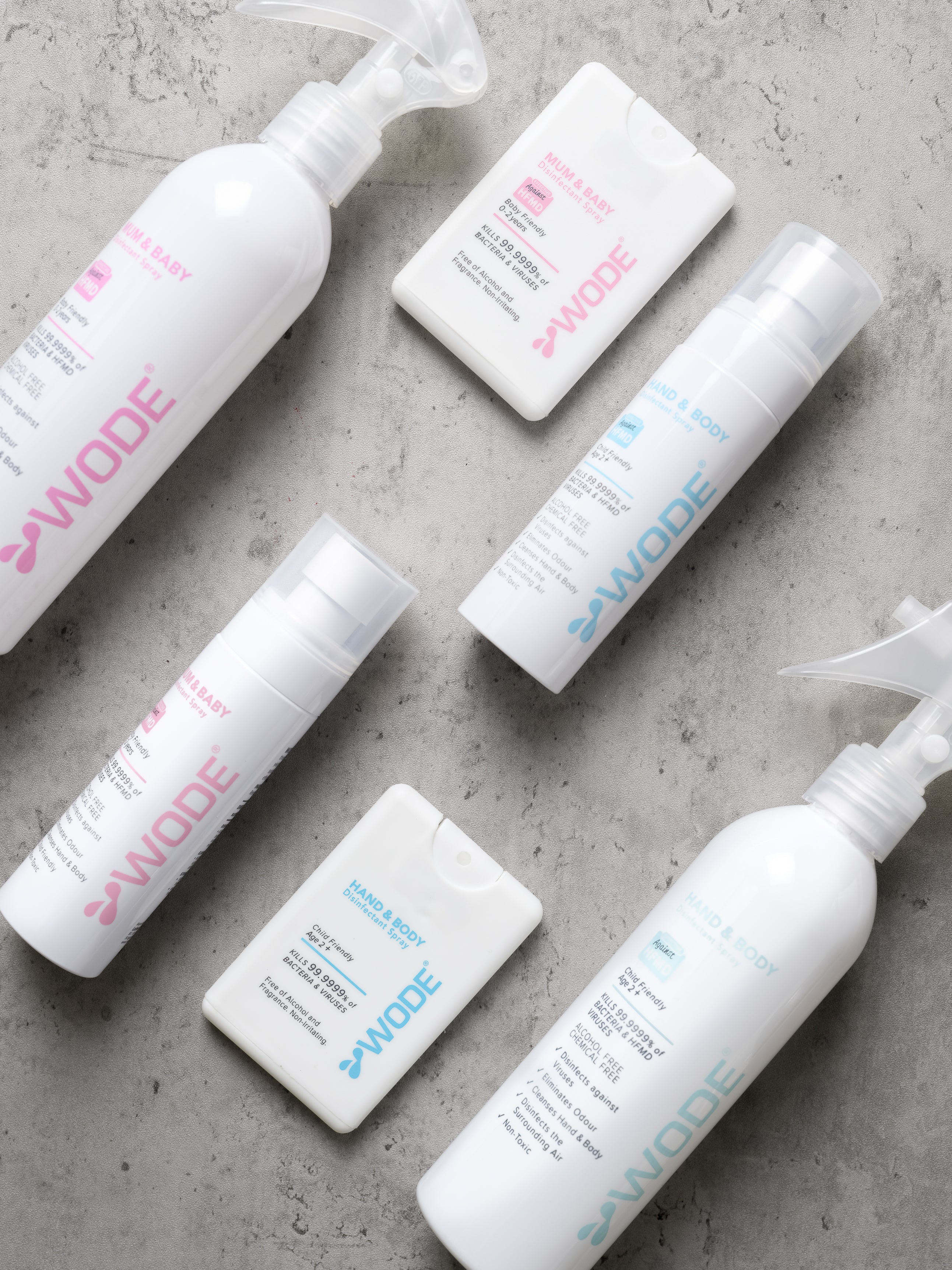 Having young babies and young children in your family is always stressful, especially in Singapore. Parents have to worry about Covid-19, worry about their young ones getting infected with Hand-Foot-and-Mouth Disease (HFMD), and worrying that they get sick. We are aware of how mothers are always looking for the best products to keep their young ones safe and healthy. Founded in 2018, WODE aims to provide young families with safe disinfectants that are non-toxic, non-alcohol and chemical-free, while remaining highly effective against pathogens.